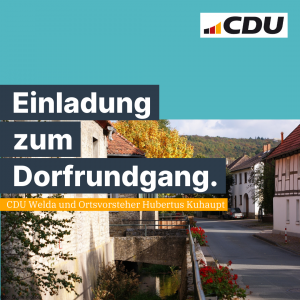 Die CDU Welda und Ortsvorsteher Hubertus Kuhaupt laden alle interessierten Weldaerinnen und Weldaern zu einem „Dorfrundgang“ in Welda ein.