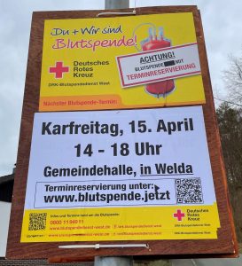 Am Karfreitag kann in Welda wieder Blut gespendet werden!