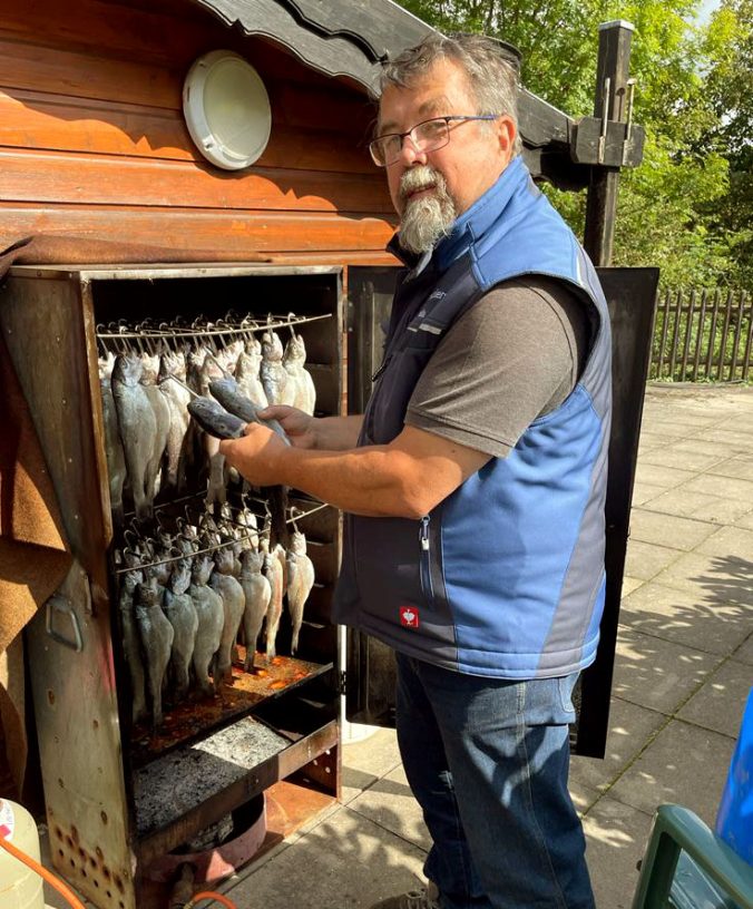 Forellen räuchern an Silvester am Vereinsgewässer in Welda