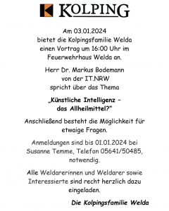 Herzliche Einladung der Kolpingsfamilie Welda!