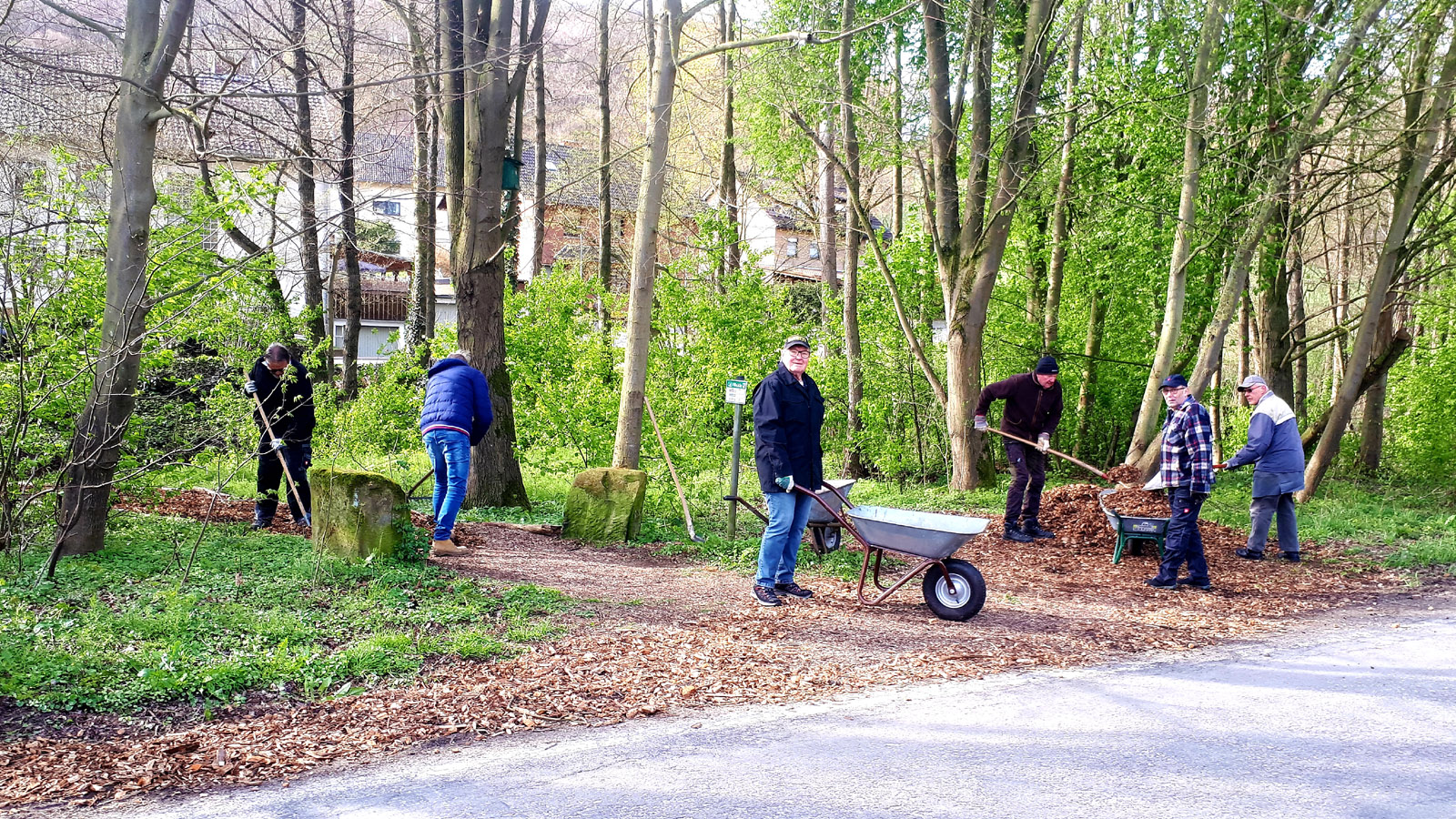 Der Nordwestliche Fuß- und Wanderweg durch den Park am Hörler Bach bekam durch unsere Rentner-AG eine neue Lage Holzhackschnitzel.