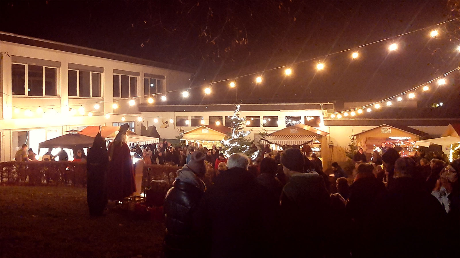 In vorweihnachtlicher Atmosphäre gab es neben heißen Glühwein und Getränken, feines Gebäck, leckere Bratwürstchen, Crepes, Käse- und Wurstspezialitäten sowie allerlei Geschenkartikel für die Weihnachtszeit in den Verkaufshäuschen, die Dr. Christian Menke wie die Jahre zuvor zur Verfügung und auf den Schulhof gebracht hatte.