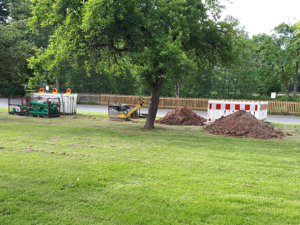 Da der neue Anschluss an die Kanalisation der Straße angeschlossen werdem muss, wird es voraussichtlich in der nächsten Woche ab 7. Juni zu einer Sperrung der Teichstraße in Höhe der Iberg-Halle kommen.