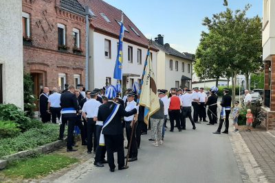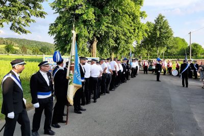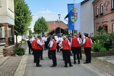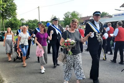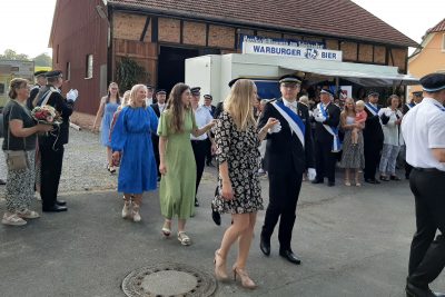 Nach dem Antritt der Schützenkompanie und der Abholung der Fahnen im Fahrweg, wurde König Jürgen Lange, der Welda seit 2022 mit Gudrun Petry regiert, bei strahlendem Sonnenschein zu Hause abgeholt.