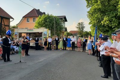 Nach erfolgreichem Aufbau und den Vorbereitungen für das Dorffest bedankte sich der Ortsvorsteher pünktlich um 20:00 Uhr im Namen der gesamten Dorfgemeinschaft bei allen Anwesenden für ihren Einsatz und ihr ehrenamtliches Engagement.