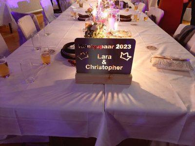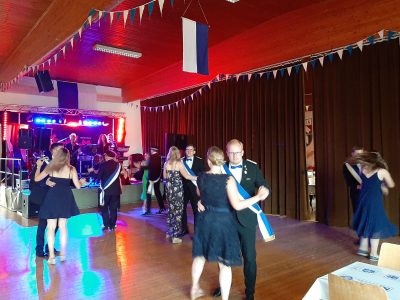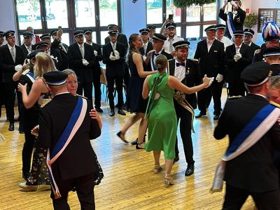 Im Anschluss an die Parade wurde das Königspaar nebst Hofstatt durch ein Ehrenspalier der Offiziere von Hauptmann Hubertus Langer und Stabsfeldwebel Markus Bodemann in die Iberg-Halle geleitet, wo sie mit ihrem ersten Tanz den Schützenball des diesjährigen Schützenfestes eröffneten.