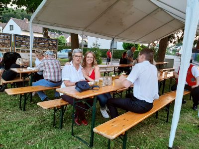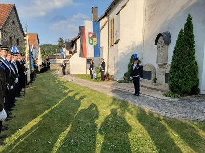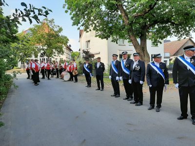Am Samstagnachmittag zogen die Kugelsburg Musikanten durch Welda. Im Ort wehten die Fahnen und es erklang die Blasmusik der Ständchen für Königspaar, Jubelpaar, Vorstand, Offiziere und Ehrenmitglieder.