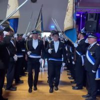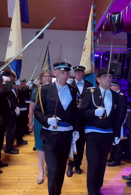 Im Anschluss an die Parade wurde das Königpaar nebst Hofstatt durch ein Ehrenspalier der Offiziere von Hauptmann Hubertus Langer und Stabsfeldwebel Markus Bodemann in die Iberg-Halle geleitet, wo sie mit ihrem ersten Tanz den Schützenball des diesjährigen Schützenfestes eröffneten.